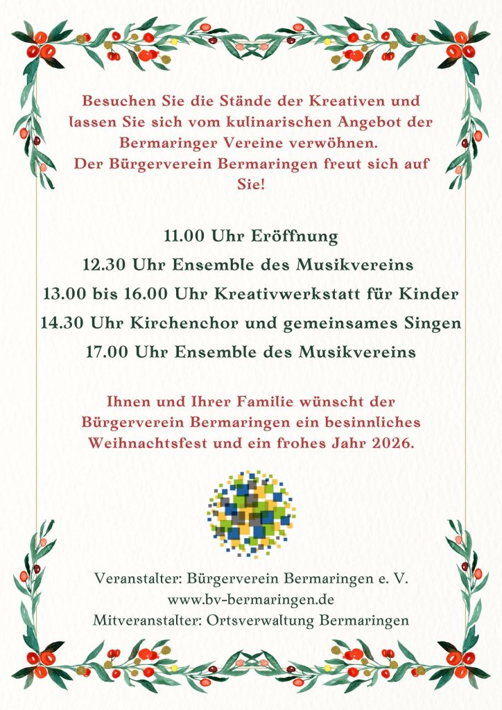 Wir freuen uns sehr Teil der Dorfweihnacht zu sein in Bermaringen.