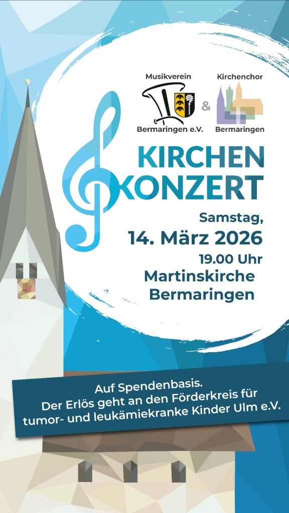 am 14 März findet unser Kirchenkonzert statt gemeinsam mit dem Kirchenchor Bermaringen.